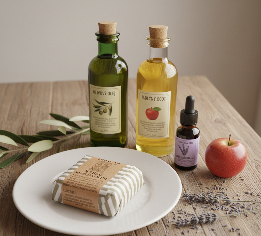 (Olivový olje,jablčný ocot,hydroxid sodný*,100% prírodný esencialny olej levanduľa,linalool**)